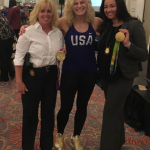 New Bedford Police Sgt. Pamela Melo, left, and Det. Dominique Sherburne, right, of the NBPD family services unit, had a golden moment today. They met Kayla Harrison, two-time Olympic gold medalist in judo, in 2012 and 2016, and a child sexual abuse survivor. Ms. Harrison, who lives in Massachusetts, was the keynote speaker at the…